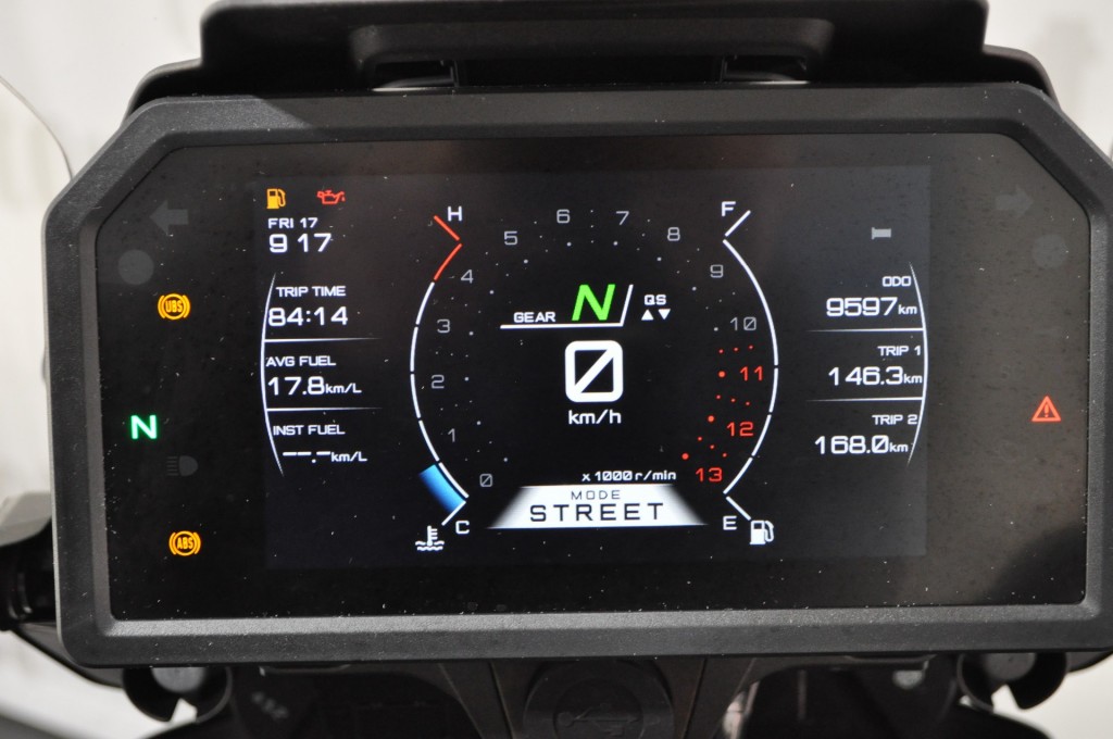 IN NIEUWSTAAT EN SUPER COMPLEET EN MET ADAPTIVE CRUISE CONTROL ( ACC ) , VERSCHILLENDE RIJ MODI , QUICK SHIFTER , ELECTRONISCHE VERING , TOPKOFFER , ZIJKOFFERS , 7 INCH TFT SCHERM , HANDVATVERWARMING EN IN EEN SPECIALE KLEURSTELLING